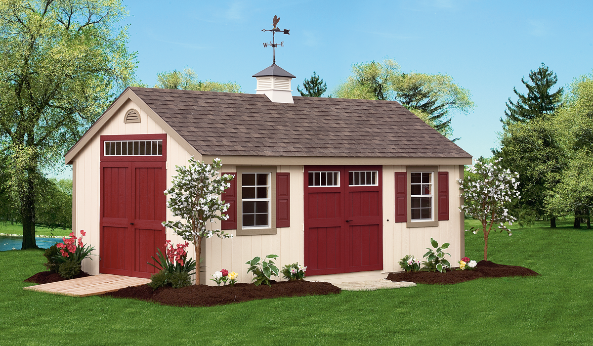 An extremely popular design with a roofline midway between the Classic and the A-Frame. This design looks great with a cupola and flowerboxes.